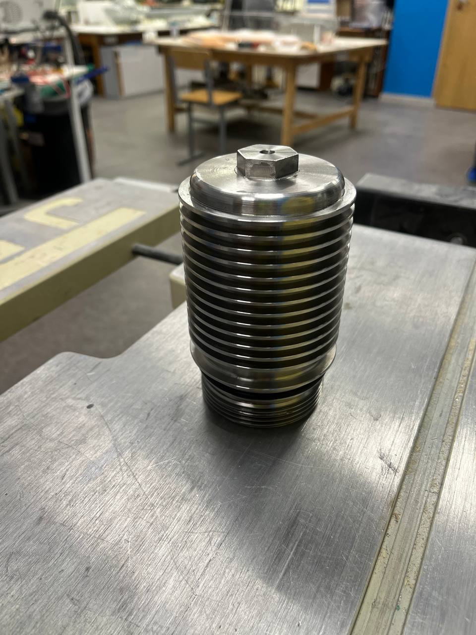Из нержавейки изготовили корпус фильтра с рёбрами охлаждения. Всё что продаётся оно из алюминия, а мы сделали из нержавейки, потому-что смогли)