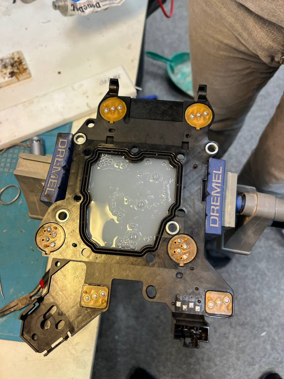 После чего подобрал нужный герметик и залил им блок управления, соединив обе части воедино, оставил на сутки склеиваться.
