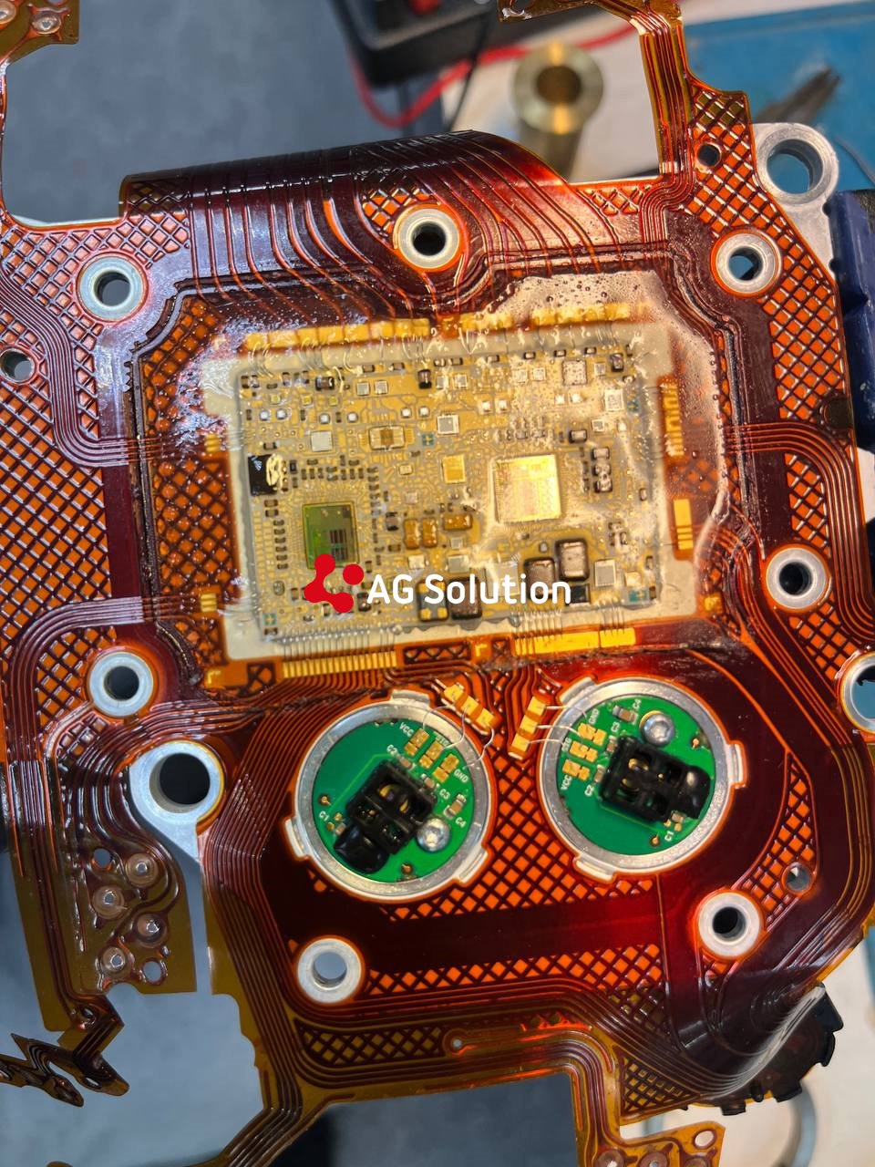 И вот обратная сторона блока управления и датчиков давления. Внутри блока абсолютно всё залито в специальном геле, его аккуратно вычистил и отпаяв контакты датчиков, извлёк датчики из блока. Для этого пришлось изготовить спец инструмент.