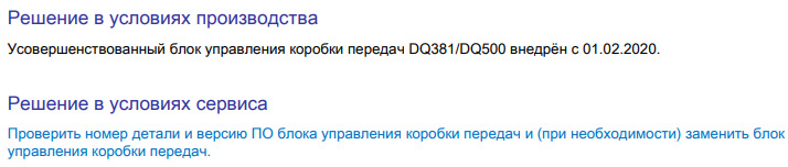 Статистика чётко указала, что после замены масла происходит отвал чётного или не чётного ряда. Высокое щелочное свежего масло отмыло грязь и закинуло в датчик старого образца с большим диаметром отверстия для масла. В новых датчик диаметр меньше. А в новых платах ещё убрали огрехи по датчику температуры. Ну и следовательно при переходе на другой софт в DQ381 особенно заряженных версий довели до ума работу сцепления в целом. Также заменили корзину сцепления на новую (Дуршлаг — предмет кухонной утвари в виде небольшой кастрюли или ковша с множеством отверстий на дне. По своему предназначению подобен ситу. )