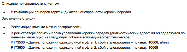 P 173500 Датчик положения муфты 1 электрическая неисправность (Position sensor for clutch 1 Electrical error)